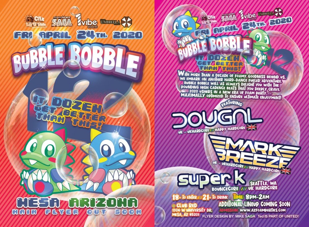 Bubble Bobble is an annual foam party rave I throw in Arizona. It's a perfect excuse to come and party in the messy foamy goodness and dance to high energy electronic music.