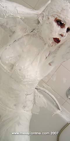 MessyLady_v2 was plunged into a dunk tank of whipped cream after the target was hit by BigPerm