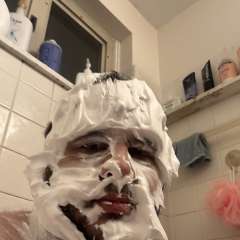 Messymissmia was surprised by The Great Reinholdo with a big sloppy cream pie to the face